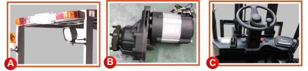 A、整车后大灯、警示灯作为标配,提高了夜间作业的安全性。
